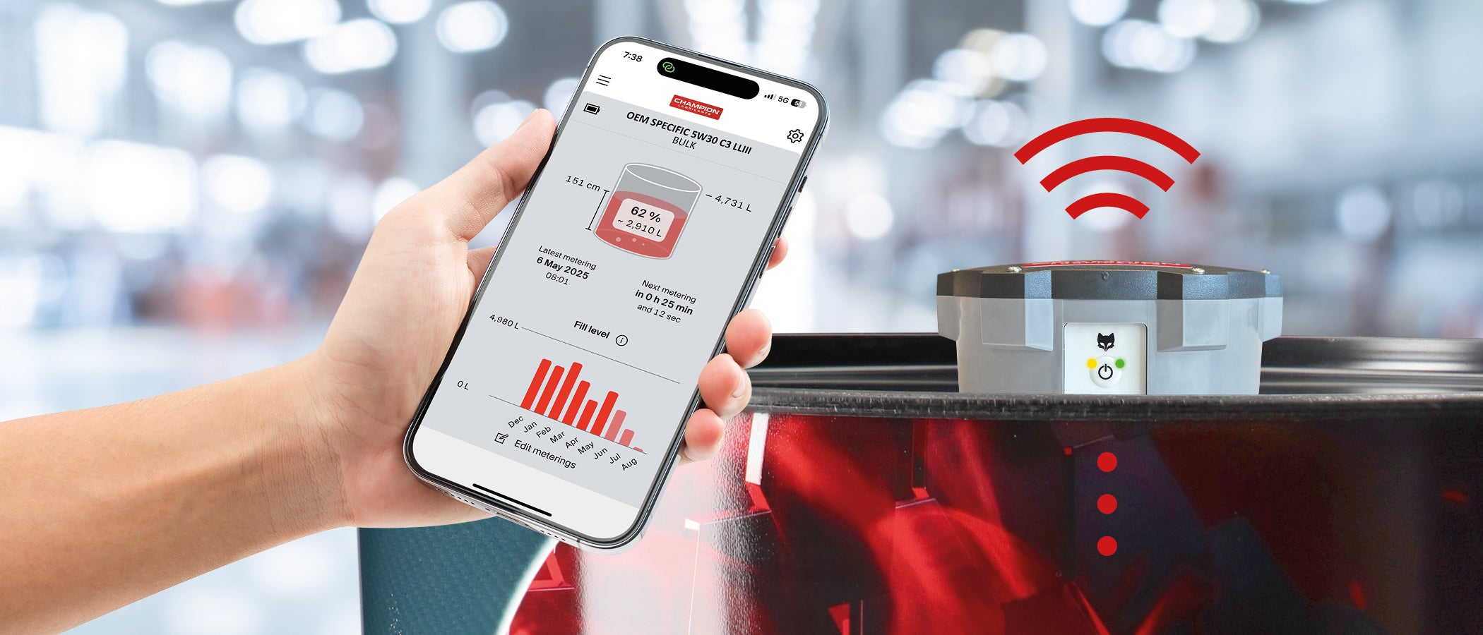 It monitors your lubricant tanks, IBCs and drums in real time, sends alerts when levels drop and helps you plan reorders before stock runs out. You always know what you have and when you’ll need more.